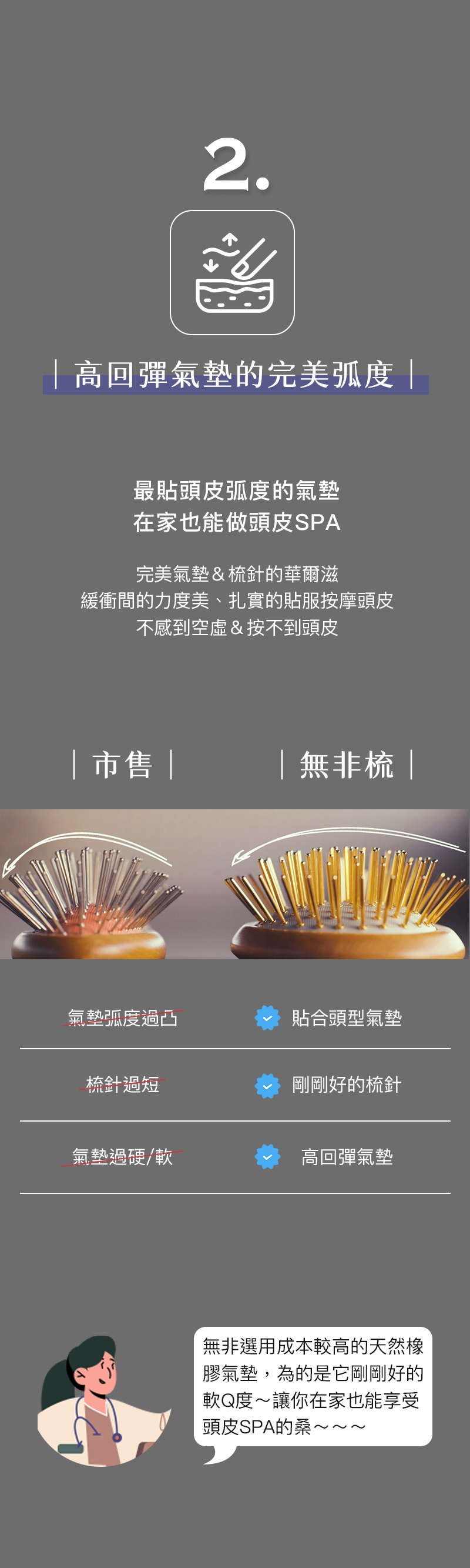 ✸ 天然橡膠氣墊|高回彈深度按摩,呵護頭皮感受