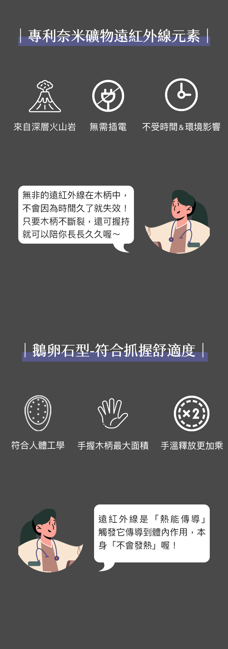 ✸ 遠紅外線握柄|自然手感設計,增加舒適度