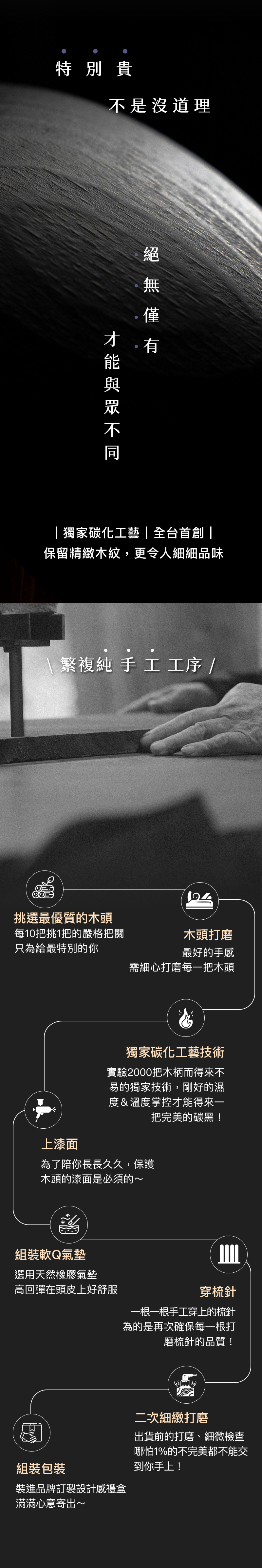 ✸ 限量手工碳化工藝|精緻沈穩木紋|👉🏻梳子界精品