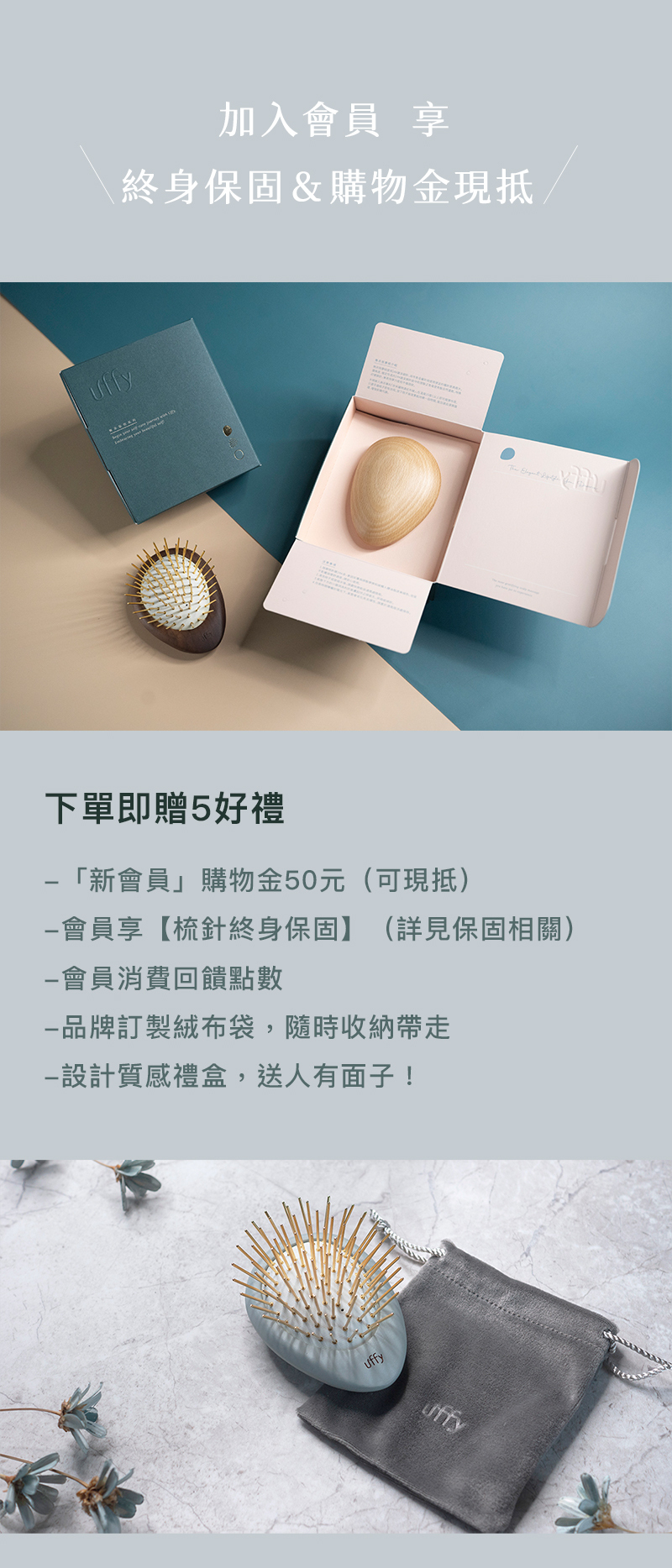 ✸ 24K鍍金銅針(黃金梳)|減少靜電困擾,輕柔貼合頭皮